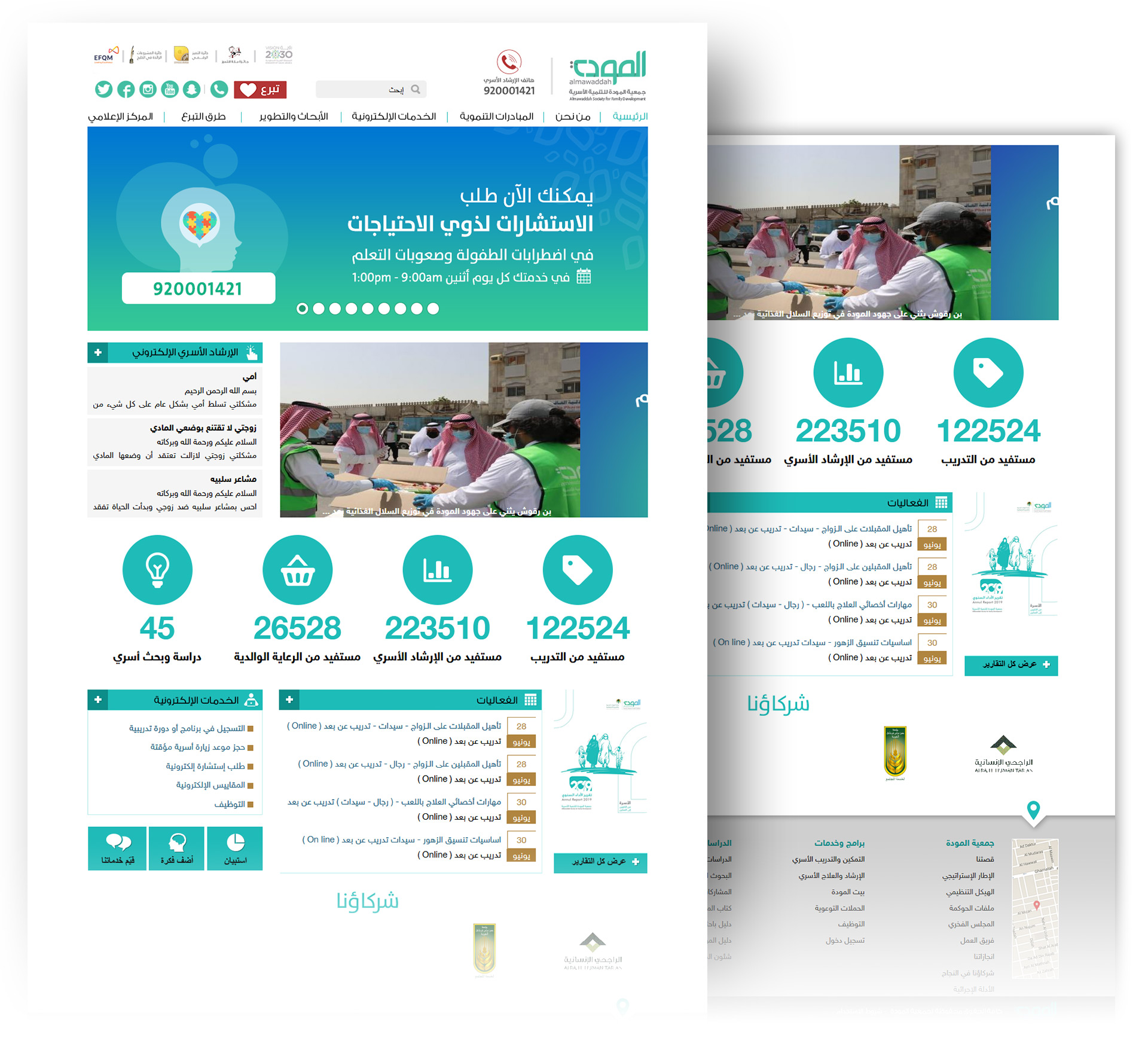 نملك وضوح في المهمة ولكنها ليست روتينية توصيل حلول البرمجيات المعقدة بشكل واضح وبسيط خصوصاً أن الجمعية لديها عدد غير قليل من الخدمات والبرمجيات المختلفة نظراً لتخصص الجمعية المتفرع ولتحقيق ذلك، حدد متخصصو المحتوى ومحللو النظم لدينا مفهومًا موحدًا تم تطبيقه عبر تجربة الويب بالكامل. حدد هذا المفهوم هياكل المحتوى والرسائل والنسخ ورحلات المستخدم المختلفة. قام مصممو UX لدينا بإنشاء وجه واضح وبديهي للهياكل الأساسية حققنا الطموح بفوز موقع جمعية المودة للتنمية الأسرية بجائزة "رقمي" من وزارة الاتصالات وتقنية المعلومات وتطبيق 146 معيار رئيسة وفرعي.